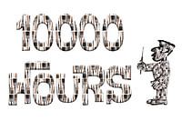 Digital composite. Grüntyers sillystration. 10000 hours with an overlay of paint brushes. It is said that it takes 10000 hours of practice in order to master a skill, trade or craft. painter, art, artist, ability, work, rule expertise, “10000 hour rule” , mastery,