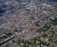 Koop de foto 1990: Historische luchtfoto van de stad Assen, Drenthe van Frans Rombout op canvas, aluminium dibond, (ingelijste) fotoprint, behang en ArtFrame, op maat geprint in Fine-Art kwaliteit.