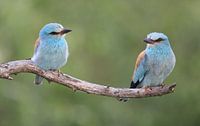2 Scharrelaars op een tak. De foto van deze man en vrouw Scharrelaar heb ik in Roemenië gemaakt. Ze kunnen erg boos kijken en dat misstaat niet op een vogelfoto. Op mijn website meer van deze soort.