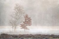 Koop de foto 2 boompjes in de mist bij het vlonderpad in het Mastbos in Breda van Jos Pannekoek op canvas, aluminium dibond, (ingelijste) fotoprint, behang en ArtFrame, op maat geprint in Fine-Art kwaliteit.