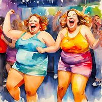 Koop dit digital art kunstwerk 2 gezellige dames aan het dansen in de disco van De gezellige Dames als reproductie op canvas, aluminium dibond, (ingelijste) fotoprint, behang en ArtFrame, op maat geprint in Fine-Art kwaliteit.