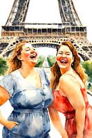 Alle werken van de gezellige dames zijn gecreëerd d.m.v. AI