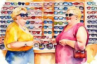 2 gezellige dames kopen een zonnebril van De gezellige Dames