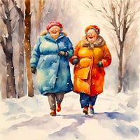 Koop dit digital art kunstwerk 2 gezellige dames wandelen in de winter van De gezellige Dames als reproductie geprint op canvas, aluminium dibond, (ingelijste) fotoprint, behang en ArtFrame. Voor jou op maat geprint in Fine-Art kwaliteit.