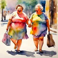 Koop dit digital art kunstwerk 2 gezellige dames wandelen in de zon van De gezellige Dames als reproductie geprint op canvas, aluminium dibond, (ingelijste) fotoprint, behang en ArtFrame. Voor jou op maat geprint in Fine-Art kwaliteit.