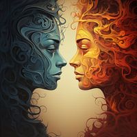 2 gezichten water en vuur schilderij met een prachtige en unieke stijl. Met prachtige kleurtinten en een uniek ontwerp maakt dit tot een stijlvolle fotoprint die prachtig staat in elke ruimte. 100% uniek en origineel!