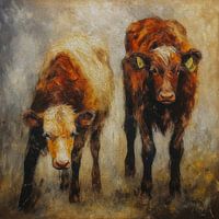 Koop dit koeien kunstwerk 2 koe kalfjes 2 van Marjolein Deelen als print op canvas, aluminium dibond, (ingelijste) fotoprint, behang en ArtFrame. Voor jou op maat geprint in Fine-Art kwaliteit.