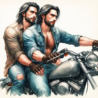 Koop dit digital art kunstwerk 2 mannen op een motor van Bernhard Karssies als reproductie geprint op canvas, aluminium dibond, (ingelijste) fotoprint, behang en ArtFrame. Voor jou op maat geprint in Fine-Art kwaliteit.