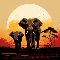 2 olifanten artistiek minimalisme schilderij met een prachtige en unieke stijl. Met prachtige kleurtinten en een uniek ontwerp maakt dit tot een stijlvolle fotoprint die prachtig staat in elke ruimte. 100% uniek en origineel!