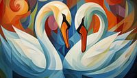 2 zwanen abstract panorama van TheXclusive Art