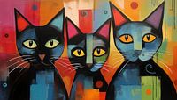 3 abstracte zwarte katten kleurrijk van TheXclusive Art