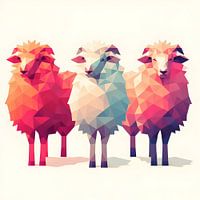 3 kleurrijke schapen op een rij met polygoon patroon.