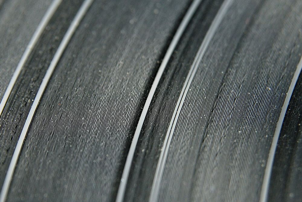 Close up grooves on a vinyl record.