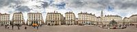 Prachtige panoramische 360 graden opname van Place Royale in Nantes, Frankrijk, met de fontein op het plein en wolkenlucht in de zomer