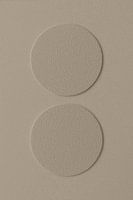 Kenmerken zijn de herhaling van geometrische vormen (cirkels en vierkanten), het gebruik van een uniforme warme taupekleur en een focus op de textuur en de verhouding van de vormen.