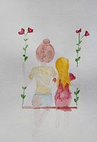 In dit schilderij straalt de stilte van een diepe band tussen twee zielen: een moeder en kind, of een volwassen vrouw en haar innerlijk kind. De zachte kleuren, de ontspannen houding en de omarming vertellen over geborgenheid, zachtheid en onvoorwaardelijke liefde.