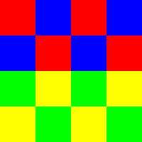 Van vier kleuren is elke kleur vier keer aanwezig (kleine vierkantjes). Deze 16 (4x4) vierkanten zijn zo gerangschikt dat ze een groot vierkant vormen.