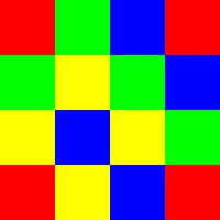 Van vier kleuren is elke kleur vier keer aanwezig (kleine vierkantjes). Deze 16 (4x4) vierkanten zijn zo gerangschikt dat ze een groot vierkant vormen.