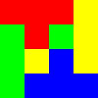 Van vier kleuren is elke kleur vier keer aanwezig (kleine vierkantjes). Deze 16 (4x4) vierkanten zijn zo gerangschikt dat ze een groot vierkant vormen.