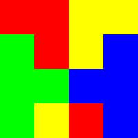 Van vier kleuren is elke kleur vier keer aanwezig (kleine vierkantjes). Deze 16 (4x4) vierkanten zijn zo gerangschikt dat ze een groot vierkant vormen.