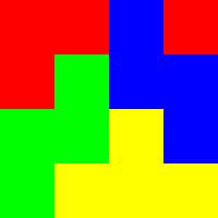 Van vier kleuren is elke kleur vier keer aanwezig (kleine vierkantjes). Deze 16 (4x4) vierkanten zijn zo gerangschikt dat ze een groot vierkant vormen.