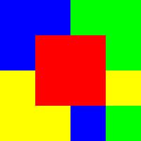 Van vier kleuren is elke kleur vier keer aanwezig (kleine vierkantjes). Deze 16 (4x4) vierkanten zijn zo gerangschikt dat ze een groot vierkant vormen.