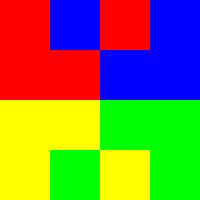 Van vier kleuren is elke kleur vier keer aanwezig (kleine vierkantjes). Deze 16 (4x4) vierkanten zijn zo gerangschikt dat ze een groot vierkant vormen.