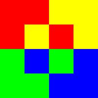 Van vier kleuren is elke kleur vier keer aanwezig (kleine vierkantjes). Deze 16 (4x4) vierkanten zijn zo gerangschikt dat ze een groot vierkant vormen.