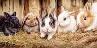 5 schattige konijntjes op een rij, ideaal voor de kinderkamer :-)