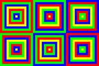 Vier vierkantjes, of kleurstrips, dubbel gelaagd.