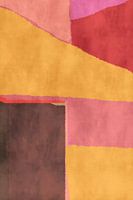 Mixed media kunst met warme kleuren, zachte texturen en eenvoudige vormen.