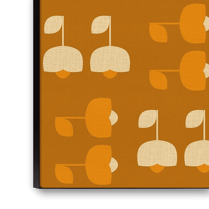 Een speelse compositie van gestileerde bloemen uit het midden van de vorige eeuw, gerangschikt in een ritmische, naadloze lay-out en weergegeven in warme, aardse tinten - terracotta, mosterd, verbrand oranje, pastelroze en zacht bruin. De mix van op vintage geïnspireerde texturen en moderne eenvoud maakt dit kunstwerk ideaal voor een Scandinavisch, retro of eclectisch interieur. Het naadloze patroonontwerp geeft het de charme en veelzijdigheid van een behang, waardoor het een geweldige keuze is voor zowel kunstprints als decortoepassingen. De handgetekende texturen brengen warmte en een tactiel gevoel in elke kamer, terwijl de herhaalde bloempatronen harmonie en balans toevoegen. Met een duidelijke retro flair, subtiele knipoogjes naar de jaren 70 esthetiek en een liefde voor handgemaakt design past dit stuk prachtig in ruimtes met Scandinavische designinvloeden, vintage vibes of gezellige seizoensaccenten. Perfect voor kinderkamers, gezellige hoekjes of elk interieur dat op zoek is naar een vrolijke, nostalgische toets.