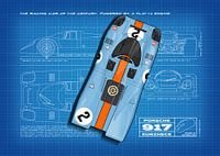 Blauwdruk van een lijn van wereldberoemde raceauto's die de 24 uur van Daytona hebben gewonnen.