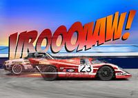 Illustratie van een serie rijdende raceauto's die het tegen elkaar opnemen. Een dynamisch autokunstwerk. Ontworpen met passie voor liefhebbers van klassieke racewagens.