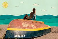 'A Day At The Beach' is een surrealistisch digitaal kunstwerk. Deze surrealistische collage print maakt gebruik van fotografie, illustratie en texturen. Door de gebruikte effecten heeft de print een licht retro tintje.