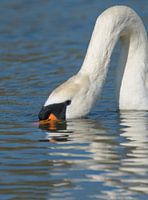Close-up van een Knobbelzwaan in een klein meer van een natuurgebied die ik mijn achtertuin noem omdat het op minder dan een kilometer afstand van mijn achterdeur gelegen is.