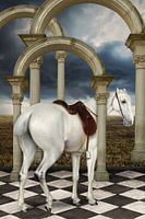 Mijn digitale, onwaarschijnlijke en onmogelijke bewerking van het schilderij "A Lady's Grey Hunter", in ca. 1806 geschilderd door de Zwitserse kunstschilder Jacques Laurent Agasse (1767–1849).