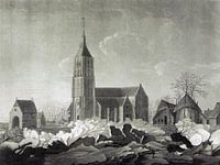 Stadsgezicht op Asperen met de kerk als skyline. Asperen is een stadje in de gemeente West Betuwe in de Nederlandse provincie Gelderland.