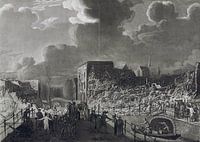 Koop de illustratie A. Lutz, Leydens Ramp, Veroorzaakt door het springen van een Schip met Buskruit zoo als het zich ver van Atelier Liesjes op canvas, aluminium dibond, (ingelijste) fotoprint, behang en ArtFrame, op maat geprint in Fine-Art kwaliteit.