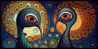A Symfonie van ogen is een kleurrijk digitaal schilderij in impressionistische stijl. Twee prachtige pauwen omringt door dromerige pauwenveren. De levendige kleuren en details van het werk prikkelen de zintuigen en brengen leven in elke kamer.