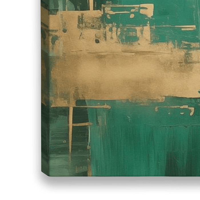 A Touch Of Gold #V is een digitaal schilderij in abstracte expressionistische stijl. Het kleurenpallet is opgebouwd uit verschillende tinten groen, goud, en grijs. Het werk geeft een moderne uitstraling aan uw interieur!