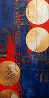 A Touch Of Gold #VIII is een digitaal schilderij in abstracte expressionistische stijl. Het kleurenpallet is opgebouwd uit verschillende tinten royaal blauw, rood en goud. Het werk geeft een moderne rustieke uitstraling aan uw interieur!