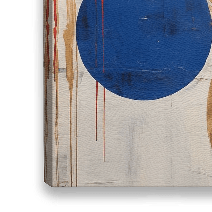 A Touch Of Gold #XI is een digitaal schilderij in abstracte expressionistische stijl. Het kleurenpallet is opgebouwd uit verschillende tinten royaal blauw, rood en goud. Het werk geeft een moderne rustieke uitstraling aan uw interieur!