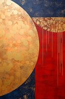 A Touch of Gold #XXV is een digitaal schilderij in abstracte expressionistische stijl. Het kleurenpallet is opgebouwd uit verschillende tinten royaal rood, blauw en goud. Het werk geeft een moderne rustieke uitstraling aan uw interieur!