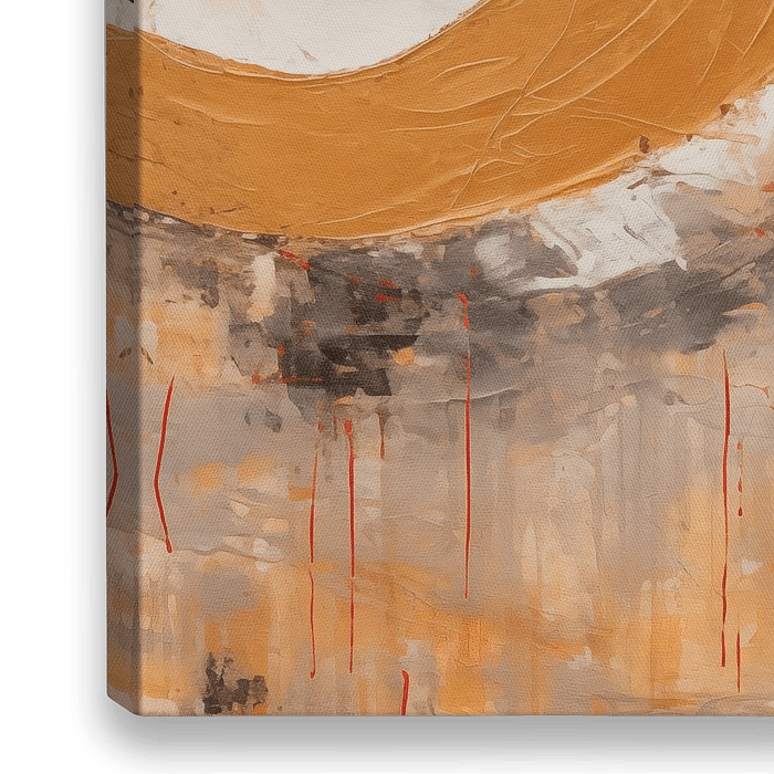 A Touch of Gold #XXVII is een digitaal schilderij in abstracte expressionistische stijl. Het kleurenpallet is opgebouwd uit verschillende tinten royaal oranje, wit en goud. Het werk geeft een moderne rustieke uitstraling aan uw interieur!