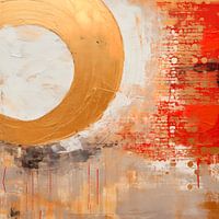 A Touch of Gold #XXVII is een digitaal schilderij in abstracte expressionistische stijl. Het kleurenpallet is opgebouwd uit verschillende tinten royaal oranje, wit en goud. Het werk geeft een moderne rustieke uitstraling aan uw interieur!