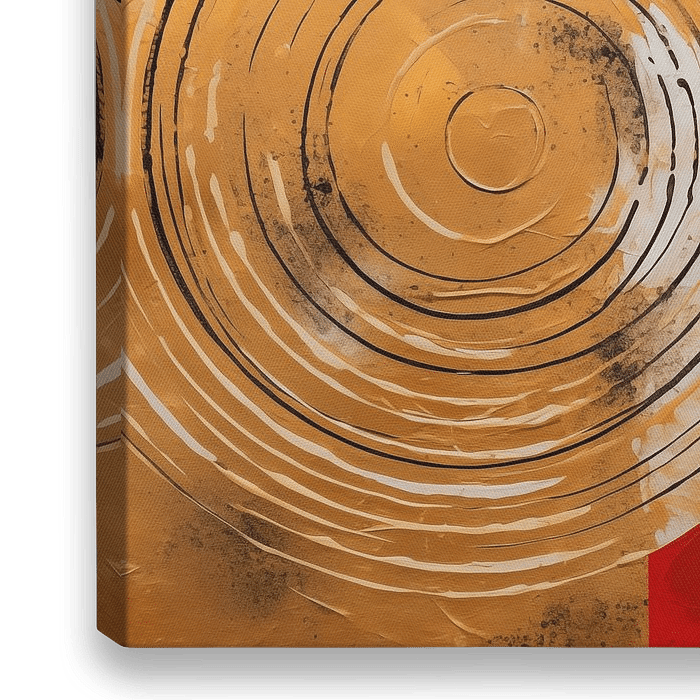 A Touch of Gold #XXX is een digitaal schilderij in abstracte expressionistische stijl. Het kleurenpallet is opgebouwd uit verschillende tinten royaal rood, wit en goud. Het werk geeft een moderne rustieke uitstraling aan uw interieur!