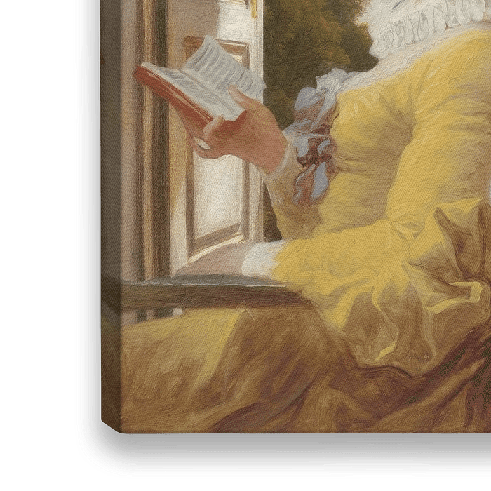 In het originele schilderij leest het meisje haar boek in de hoek van een wat sombere kamer, ik heb haar in deze…