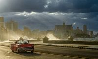 Een klassieke Chevrolet op de Malecon in Havana, Cuba