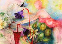 Strand / Zee / Zomer/ Vakantie / Zwemmen / Zonnen / Zon / Genieten / Illustratie / Figuratieve kunst/ Abstracte kunst / Portret / Nostalgie
